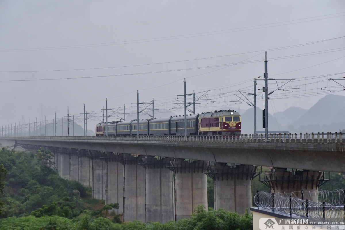 南凭高铁崇凭段联调联试检测列车正点驶出崇左南站。陈泉任 摄