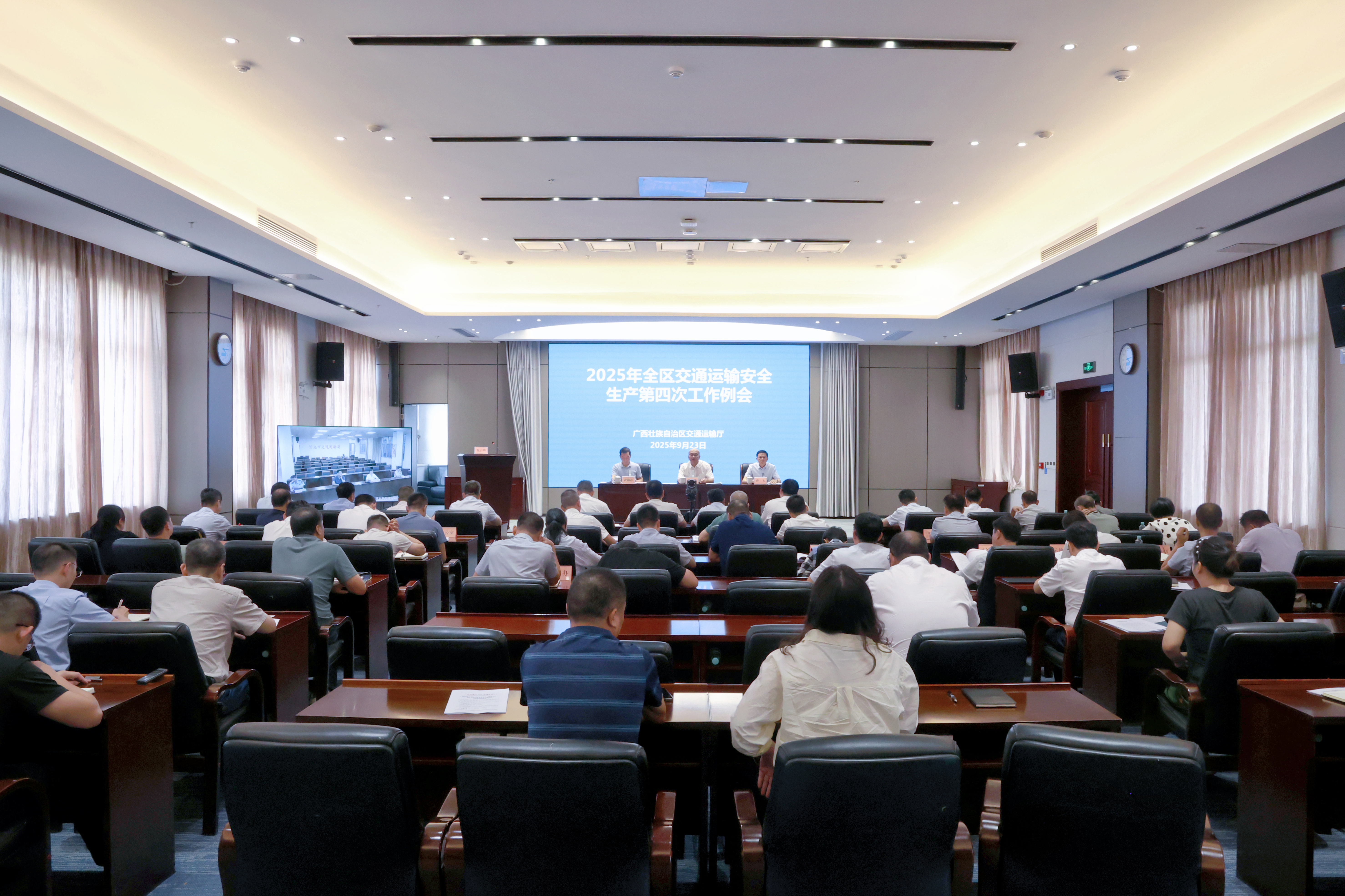 南宁讯(谭雪飞 通讯员 陆永颜 摄影报道)9月23日,自治区交通运输厅在南宁召开2025年全区交通运输安全生产第四次工作例会。自治区交通运输厅副厅长陈津维出席会议并讲话,厅安全总监唐飞主持会议。